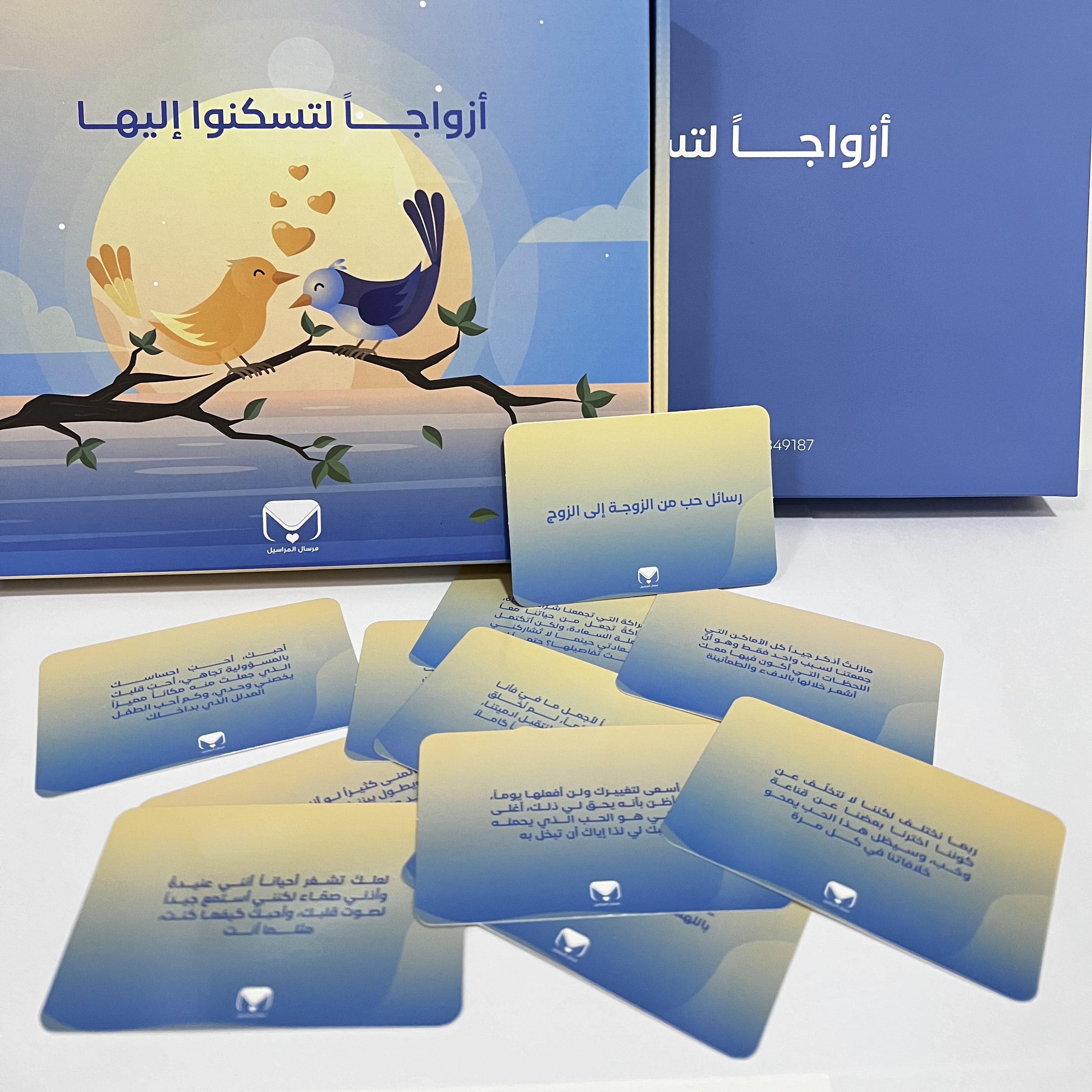 طلبت منتج (أزواجـاً لِـتسكنو إليهـا).. ليوم زواجنا الأول. و من أحلى المنتجات يلي أخذتها و ماندمت عليها صرراحة مادري وش اعبر من جمال الأسئلة او الكلمات او البطايق الذربة ماشاءالله راقي راقي?.. والأهم كانت ردة فعل زوجي فيه فرحتني بكثير لأني صدق م ندمت ع ال